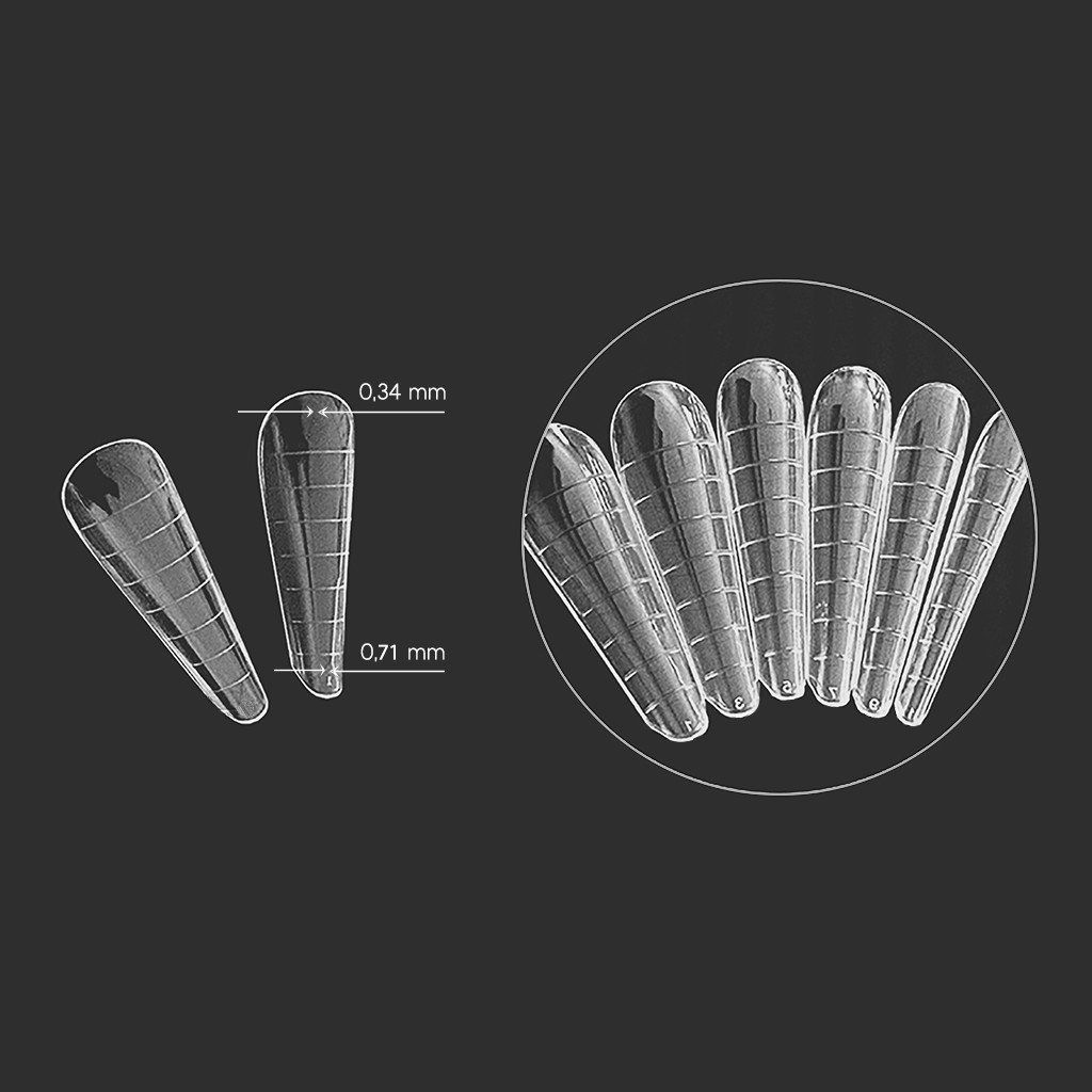 Le DUAL FORMS AGLIA sono progettate per una ricostruzione rapida e semplice delle unghie con risultati professionali. Grazie al design innovativo con bordo assottigliato, garantiscono una transizione fluida tra l’unghia naturale e il materiale di modellazione, riducendo la necessità di limatura eccessiva. La maggiore flessibilità consente una manipolazione più semplice e un adattamento preciso alla forma dell’unghia.