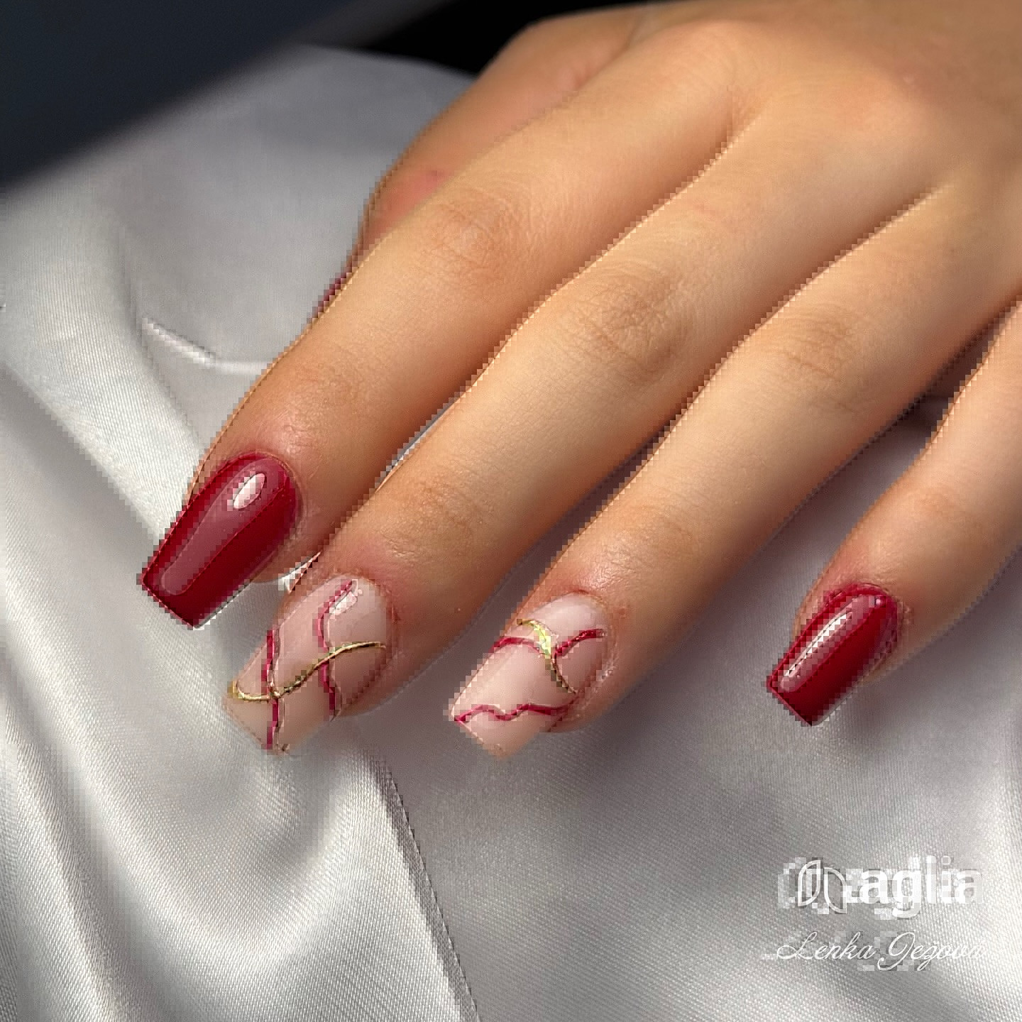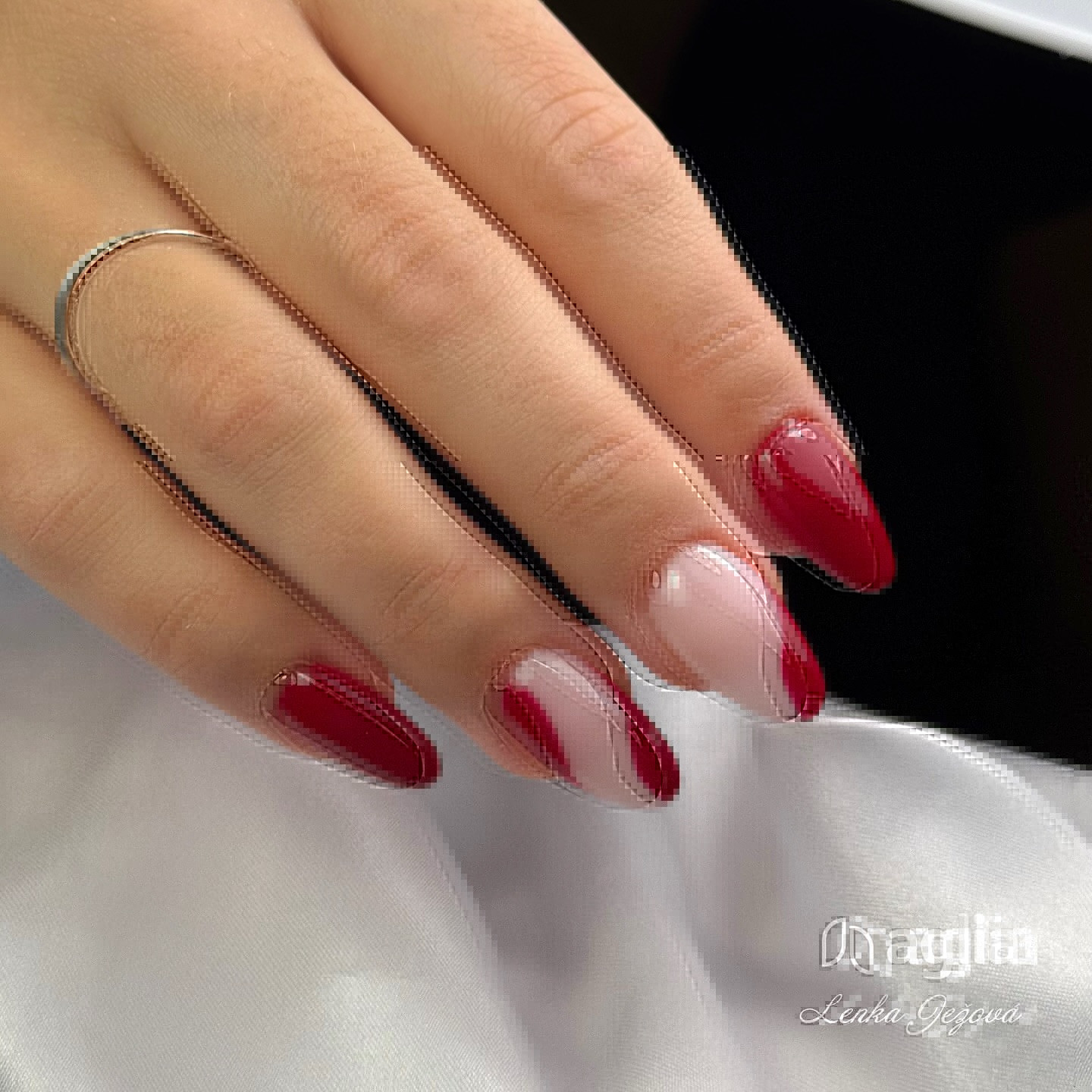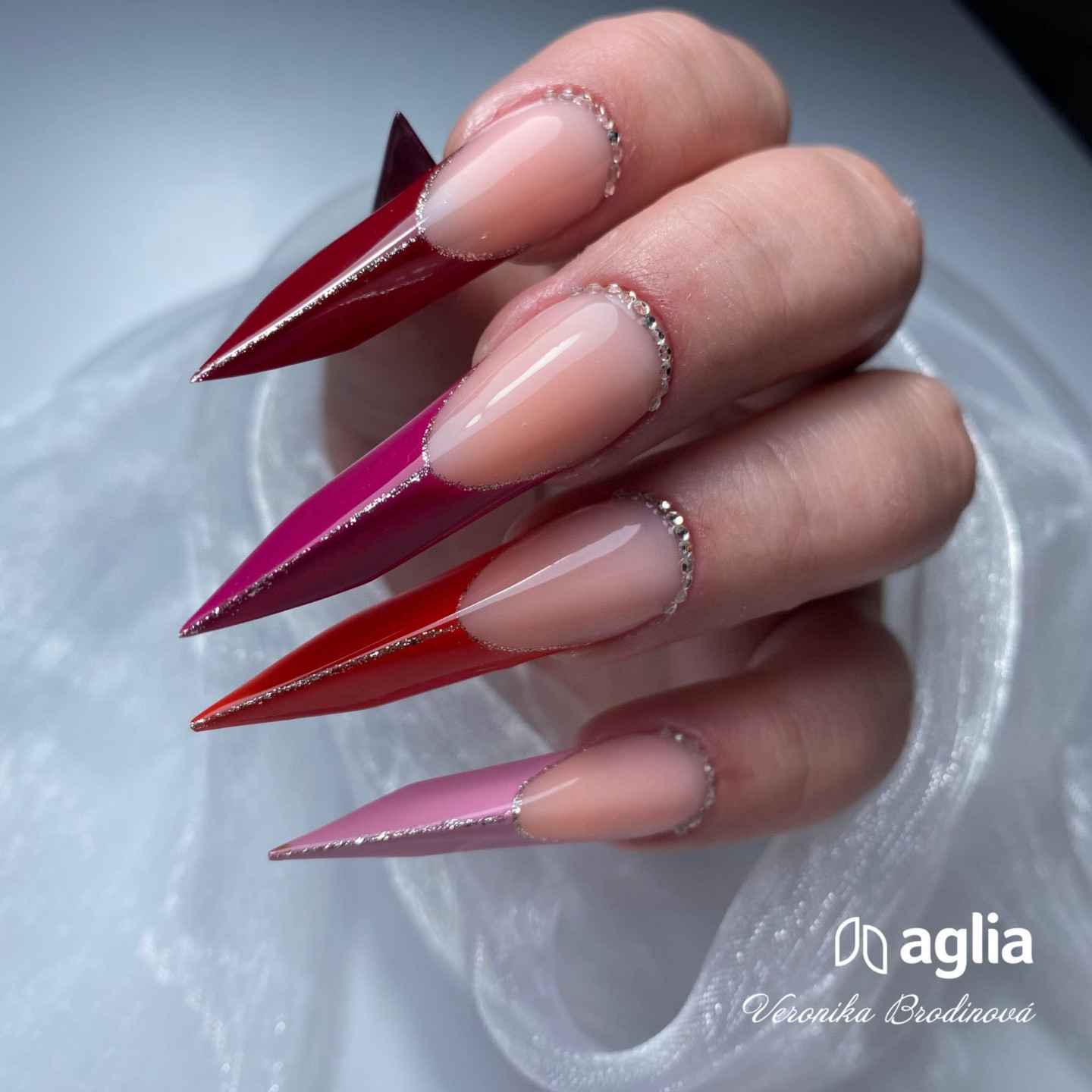 I gel colorati di AGLIA hanno qualitá superiore e grazie all´alta pigmentazione riescono a coprire bene giá con uno strato leggero risparmiando molto materiale.