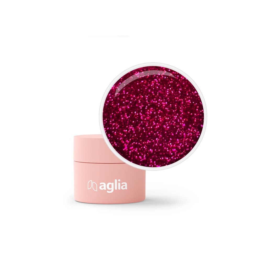 Gel UV colorato glitter per unghie nella tonalità magenta.