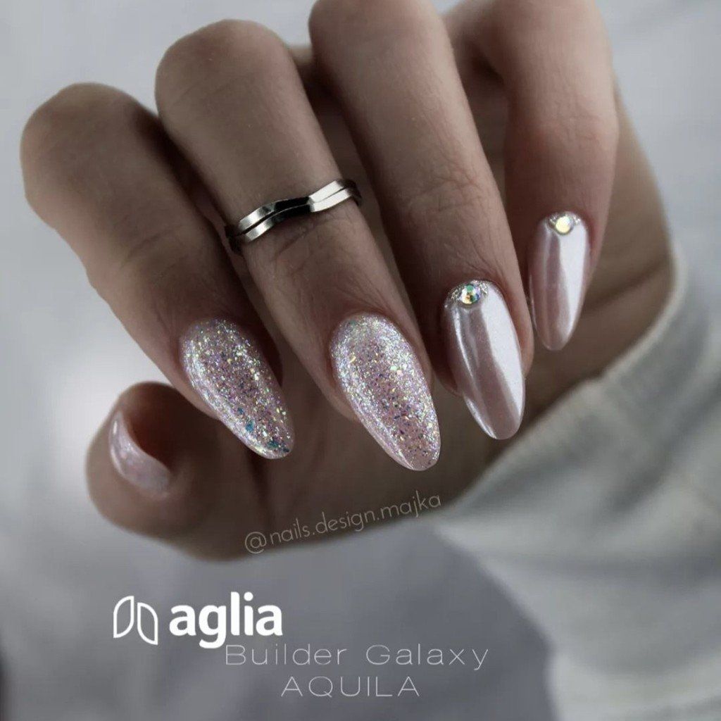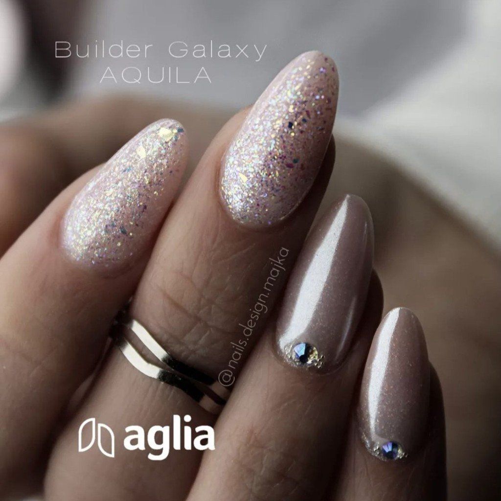 BUILDER GALAXY è un gel UV costruttore di lusso con uno splendido effetto scintillante, che dona profondità e una brillantezza elegante alle unghie. Presenta una consistenza tixotropica, il che significa che a riposo è più denso e durante l’applicazione si rilascia delicatamente – non cola, mantiene la forma e garantisce il massimo controllo. Grazie alla sua elasticità è ideale per lunghezze corte e medie. L’effetto scintillante consente inoltre di utilizzare il gel come elemento di design, applicandolo in uno strato sottile su unghie ricostruite o colorate.