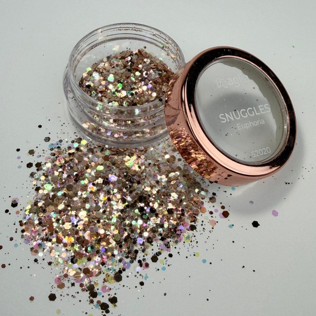 I glitter della collezione EUPHORIA affascinano grazie a un mix unico di diverse dimensioni e forme, creando un effetto scintillante intenso e splendidi riflessi di luce. Donano alla manicure profondità, eleganza e un tocco deciso. Sono ideali per l’applicazione nello strato di dispersione del gel colorato o sotto un gel trasparente. Molto trendy è anche il loro utilizzo nella french strutturata o nella ricostruzione realizzata con le dual forms, dove valorizzano perfettamente la forma e il design dell’unghia.
