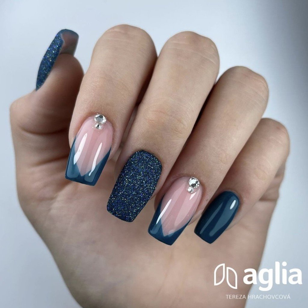 I glitter possono essere applicati anche in un sottile strato di gel costruttore trasparente oppure tamponati nello strato di dispersione del gel colorato e successivamente sigillati con un TOP COAT. Il risultato è una superficie liscia con un elegante effetto scintillante.