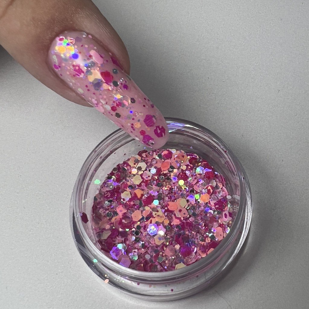 I glitter della collezione PRINCESS affascinano con un mix unico di diverse dimensioni e tonalità, con effetti sia opachi che scintillanti. Donano alla manicure un aspetto distintivo e deciso. Sono ideali per l’applicazione nello strato di dispersione del gel colorato o sotto un gel trasparente. Molto trendy è il loro utilizzo nella french strutturata o nella ricostruzione realizzata con le dual forms, dove valorizzano perfettamente la forma e il design dell’unghia.