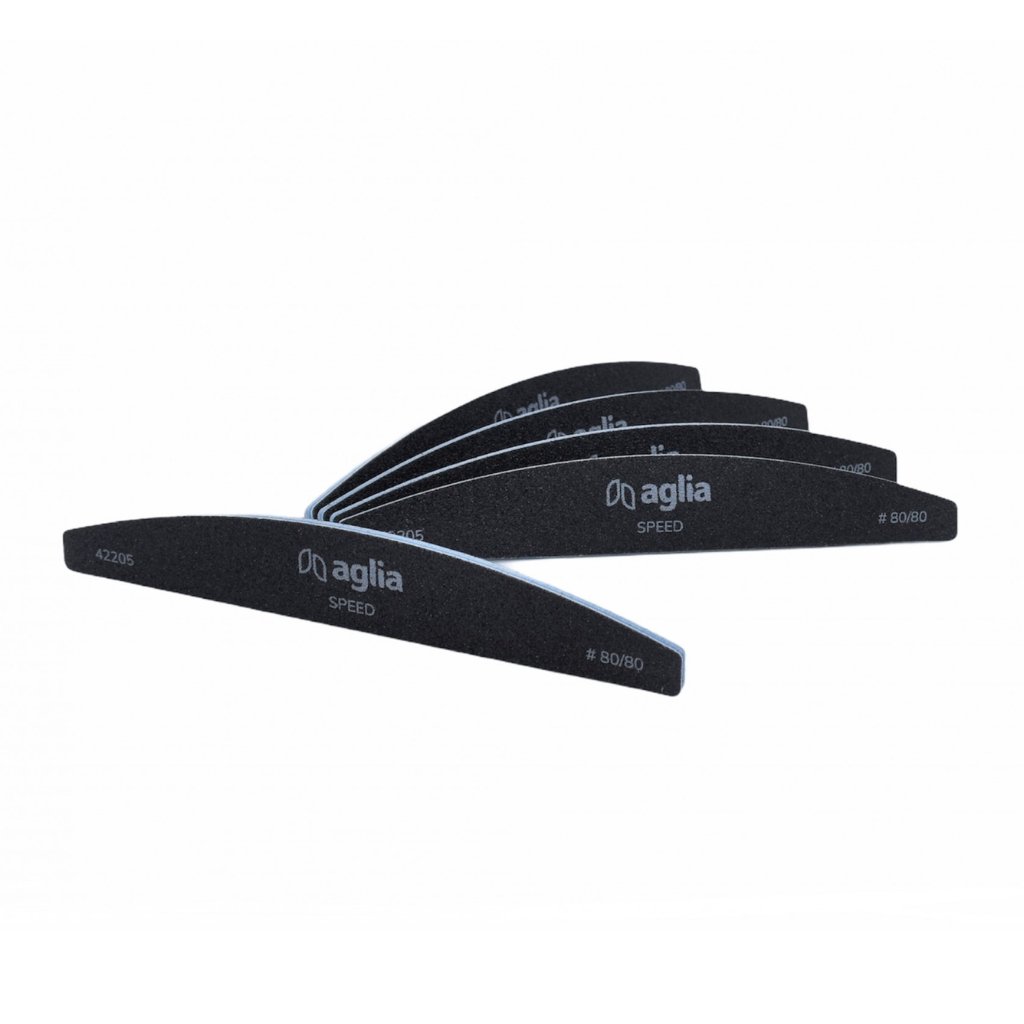 SPEED 80/80 – lima per unghie a forma di mezzaluna in colore nero, particolarmente adatta alla limatura di acrilico e gel duri. Grazie alla sua struttura solida, non si piega durante la limatura ed è completamente disinfettabile.